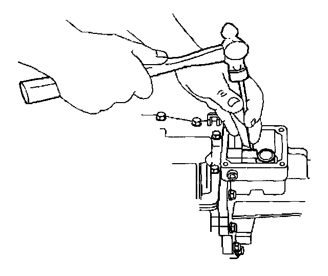 9. Apply sealant GM P/N 12346004 (Canadian P/N 10953480) or equivalent to the top two extension housing bolts.