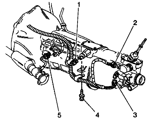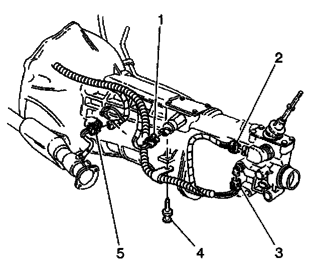 12. Remove the push in retainer (4) and wiring harness bracket.