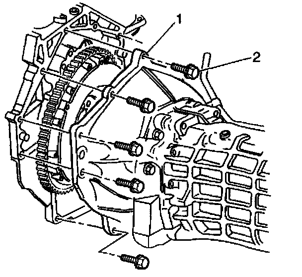 Important: Leave the 2 clutch housing to engine block retaining bolts located at the 10 and 2 o'clock positions tight at this time.