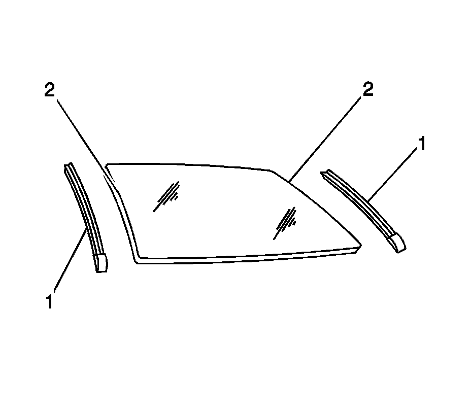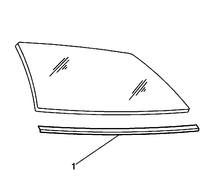 7. Remove the window reveal lower molding (1). Refer to Rear Window Reveal Molding Replacement (Service and Repair) .