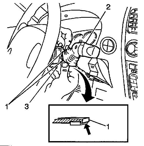 2. Install the wiper switch (2) to the column (3) making sure the retaining tabs (1) are engaged.
