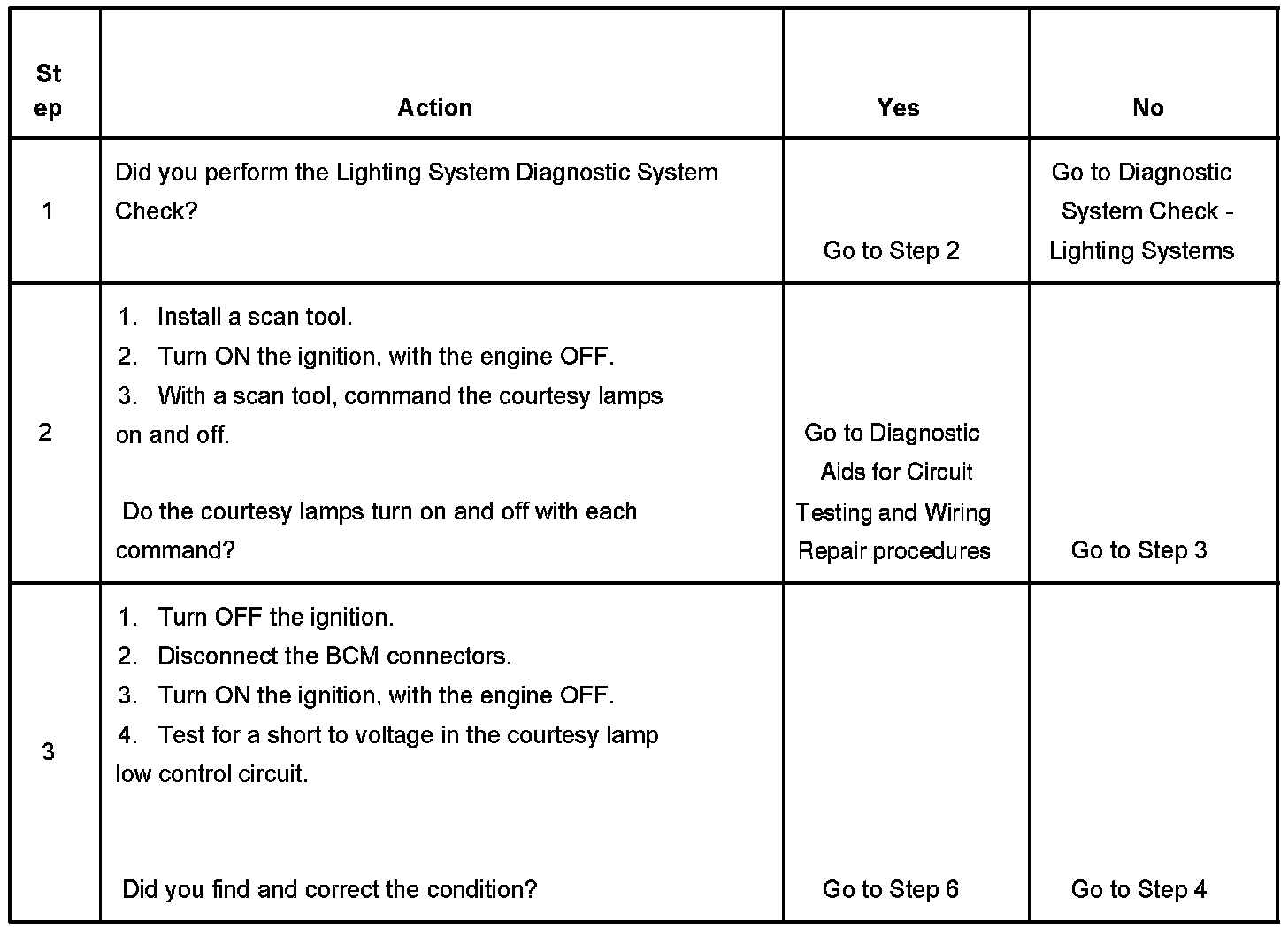 The numbers below refers to the step numbers on the diagnostic table.