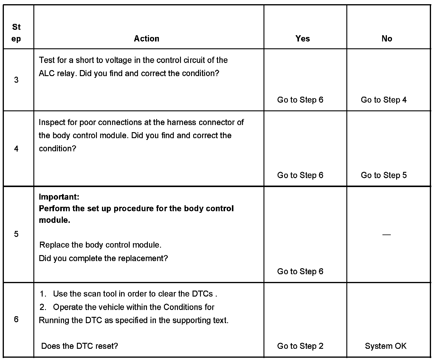 - The BCM turns off the ALC relay control for the remainder of the ignition cycle.