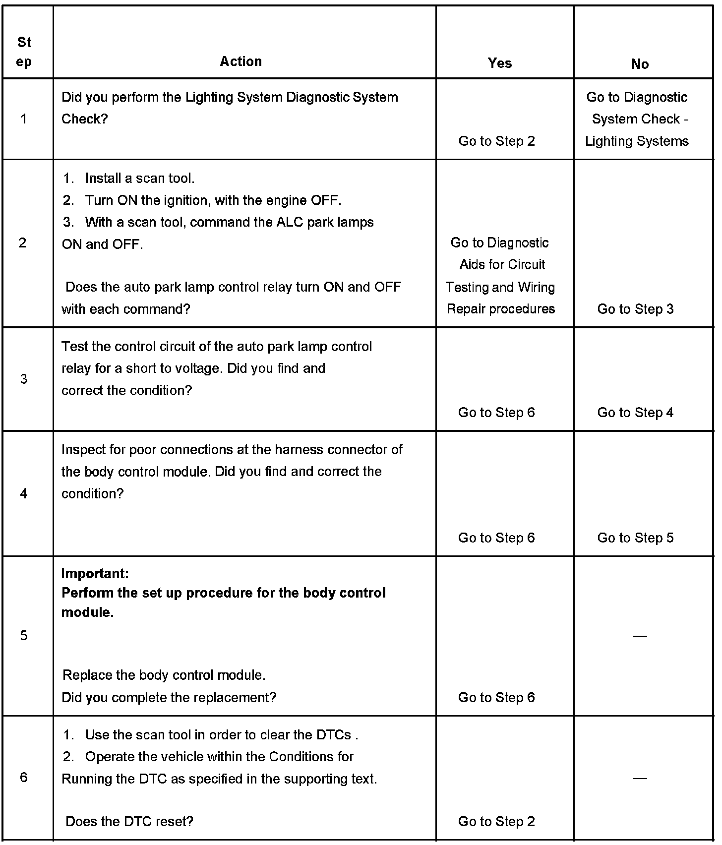 - The BCM turns off the auto park lamp control relay control circuit for the remainder of the ignition cycle.