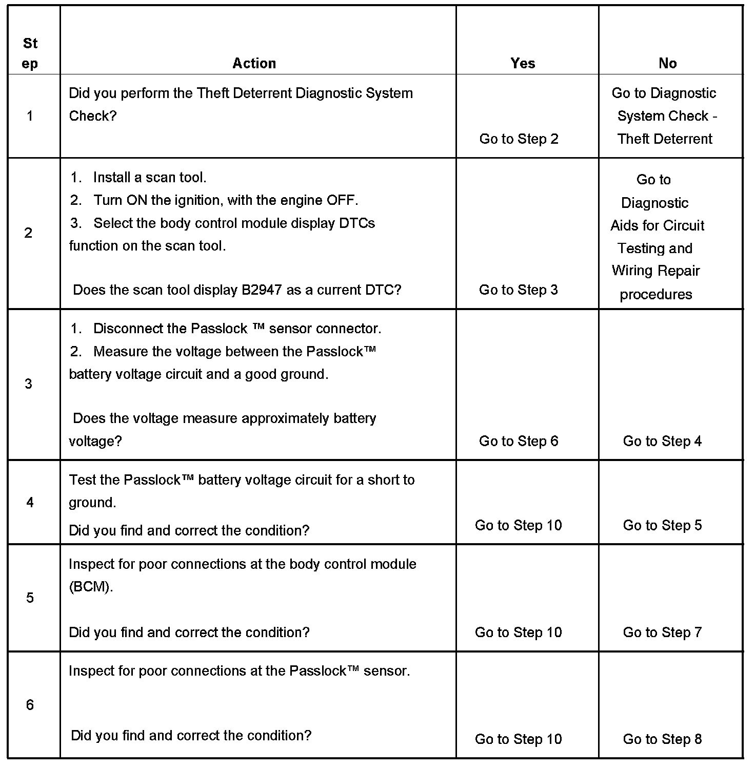 - When a short to ground is no longer present on the Passlock sensor power circuit, the ignition switch must be cycled from OFF to ON before this DTC can change from a current DTC to a history DTC.