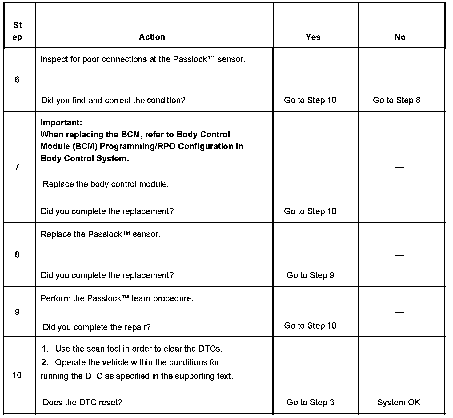 - When a short to battery is no longer present on the Passlock sensor power circuit, the ignition switch must be cycled from OFF to ON before this DTC can change from a current DTC to a history DTC.