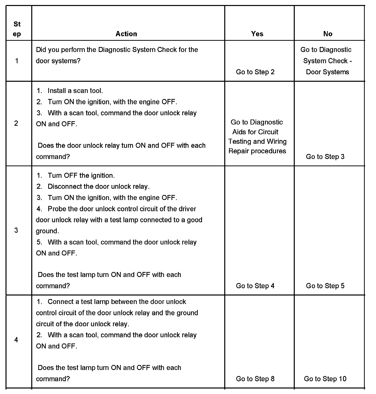 4. Tests for an open in the ground circuit to the door unlock relay.