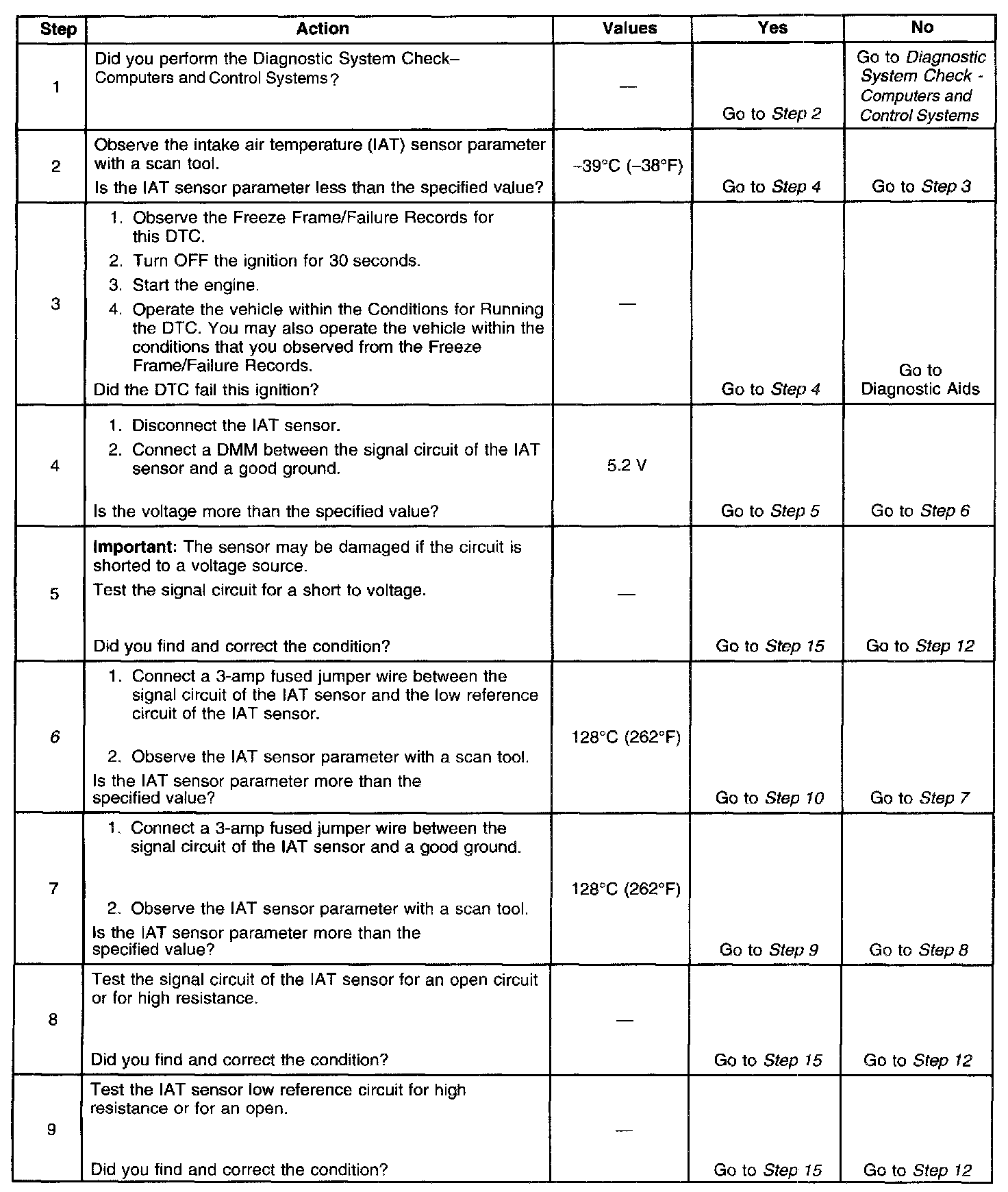 - When the vehicle is at ambient temperature, the IAT sensor and ECT sensor temperatures should be relatively close to each other. Refer to Temperature vs Resistance.