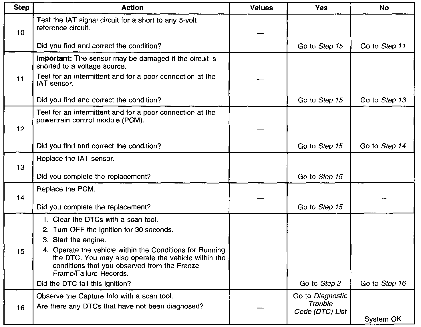 - If an intermittent condition is suspected, refer to Intermittent Conditions. Diagnostic Strategies