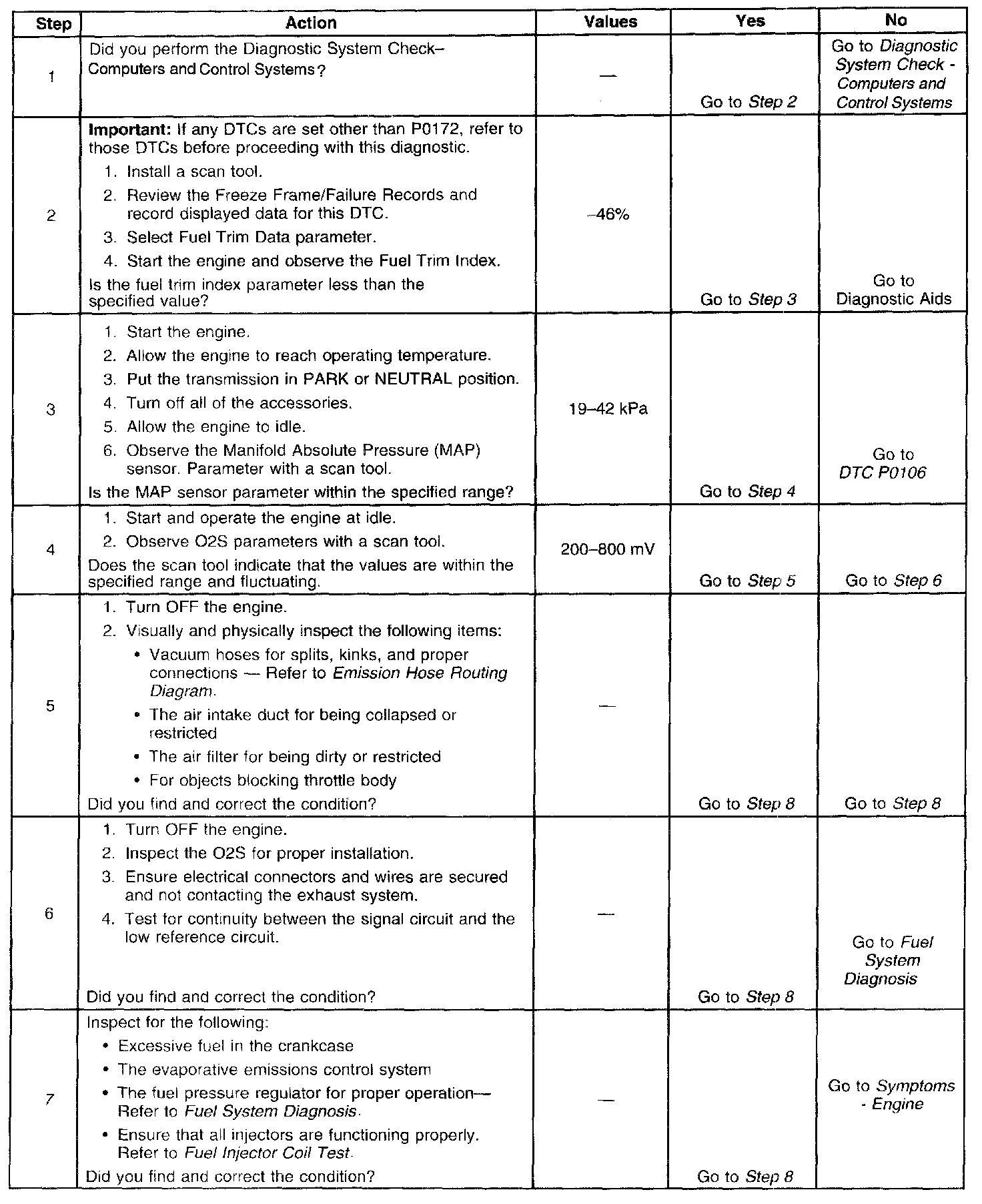 - The diagnostics have determined that a rich condition was not due to excessive vapor.