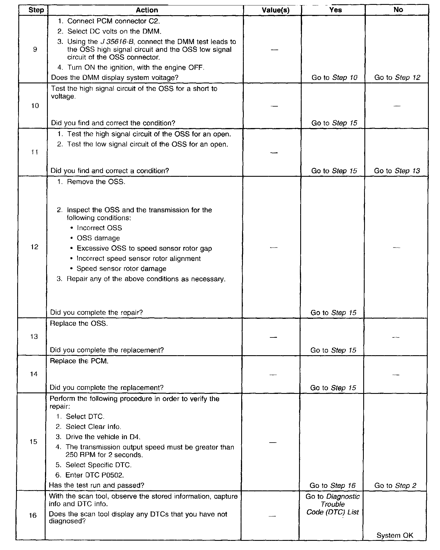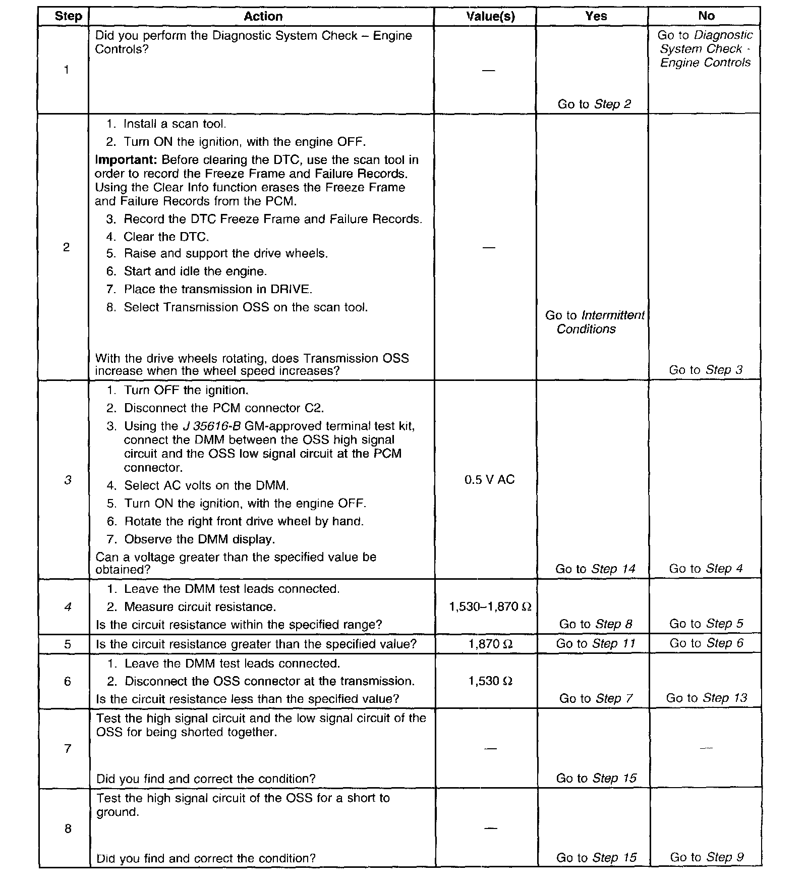 3. This step tests the ability of the OSS to produce an AC voltage. This step also verifies the integrity of the wiring to the PCM.