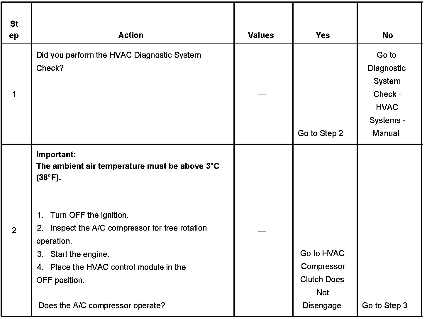- The A/C compressor clutch is disabled.