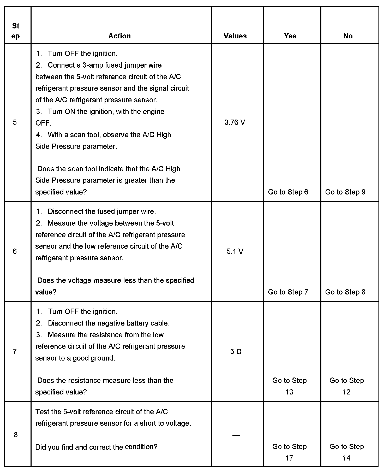- The PCM detects the A/C refrigerant pressure signal circuit is less than 5 counts (0.09 volt) or more than 250 counts (4.90 volt).