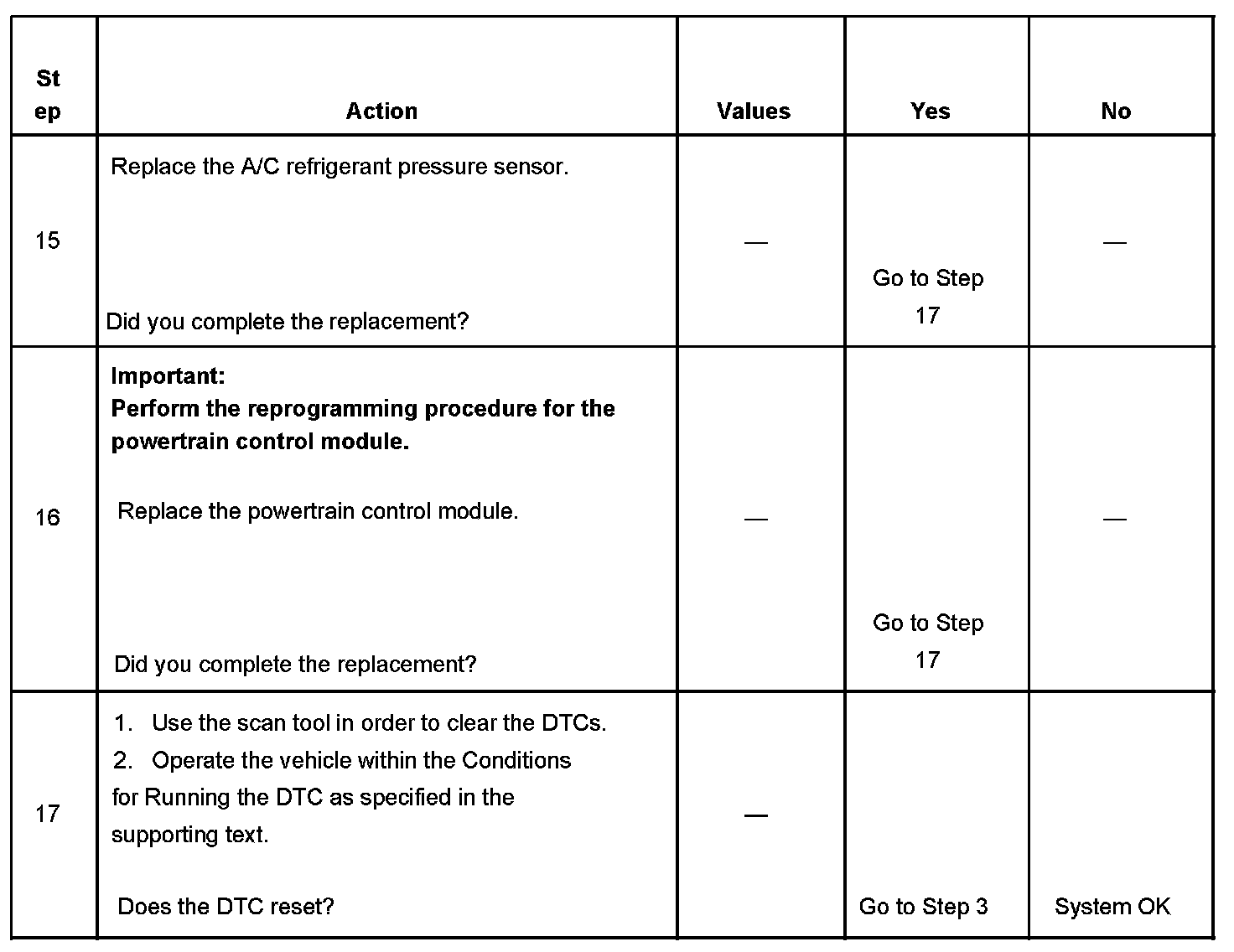 The numbers below refer to the step numbers on the diagnostic table.