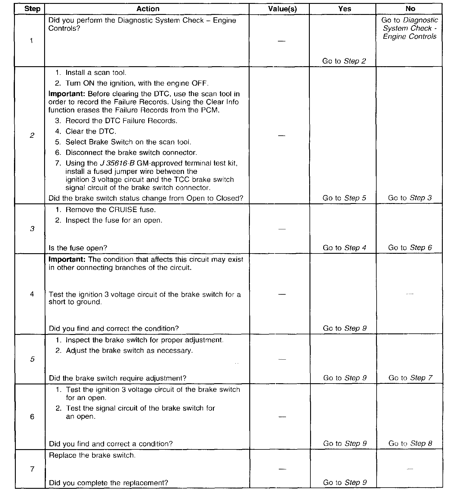 ^ The PCM disregards the brake switch input for TCC scheduling. The PCM then uses throttle position and vehicle speed inputs to determine TCC application and release. Use of these inputs may result in a noticeable harsh apply or abrupt release of the TCC.
