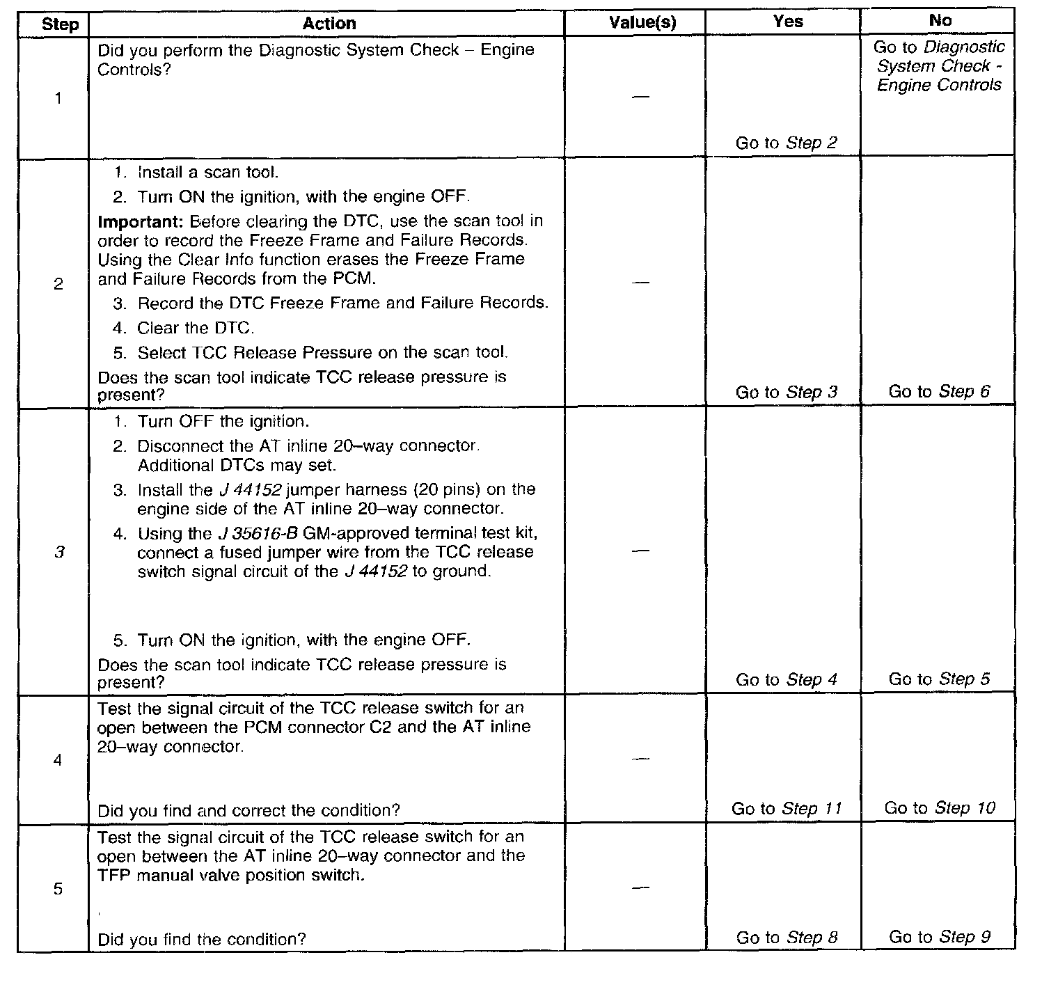 The TCC release switch is open, release fluid pressure present, for 6 seconds, twice during the same trip.