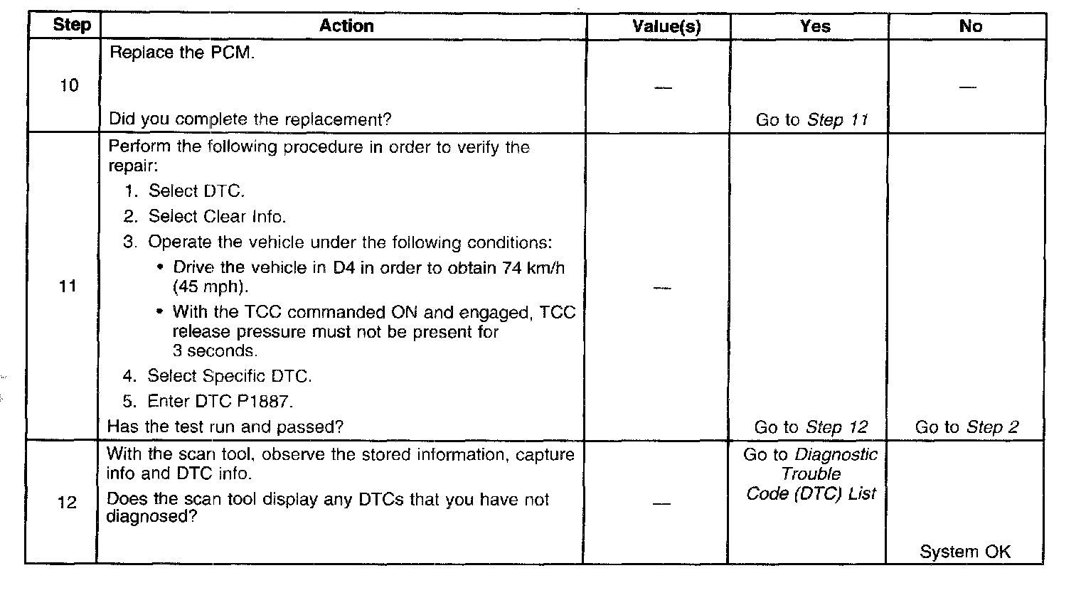 ^ The PCM stores DTC P1887 in PCM history during the second consecutive trip in which the Conditions for Setting the DTC are met.