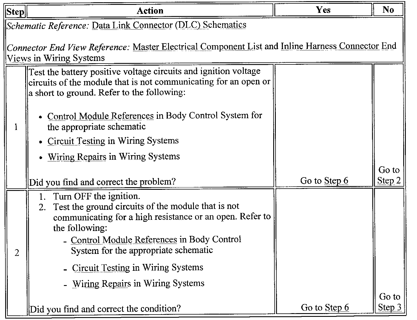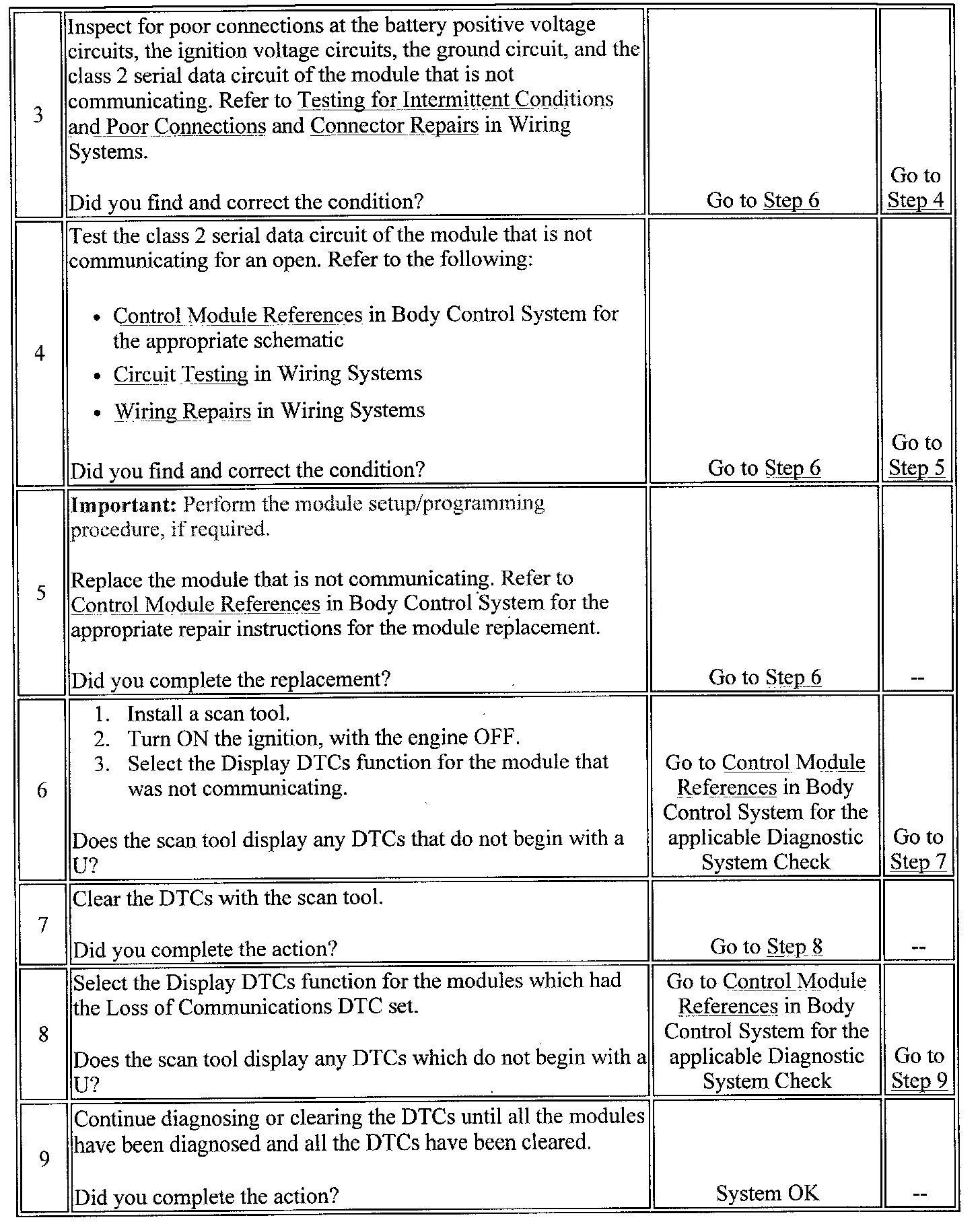 6. The module which was not communicating due to an open in the class 2 serial data circuit may have set Loss of Communication DTCs for those modules that it was monitoring.