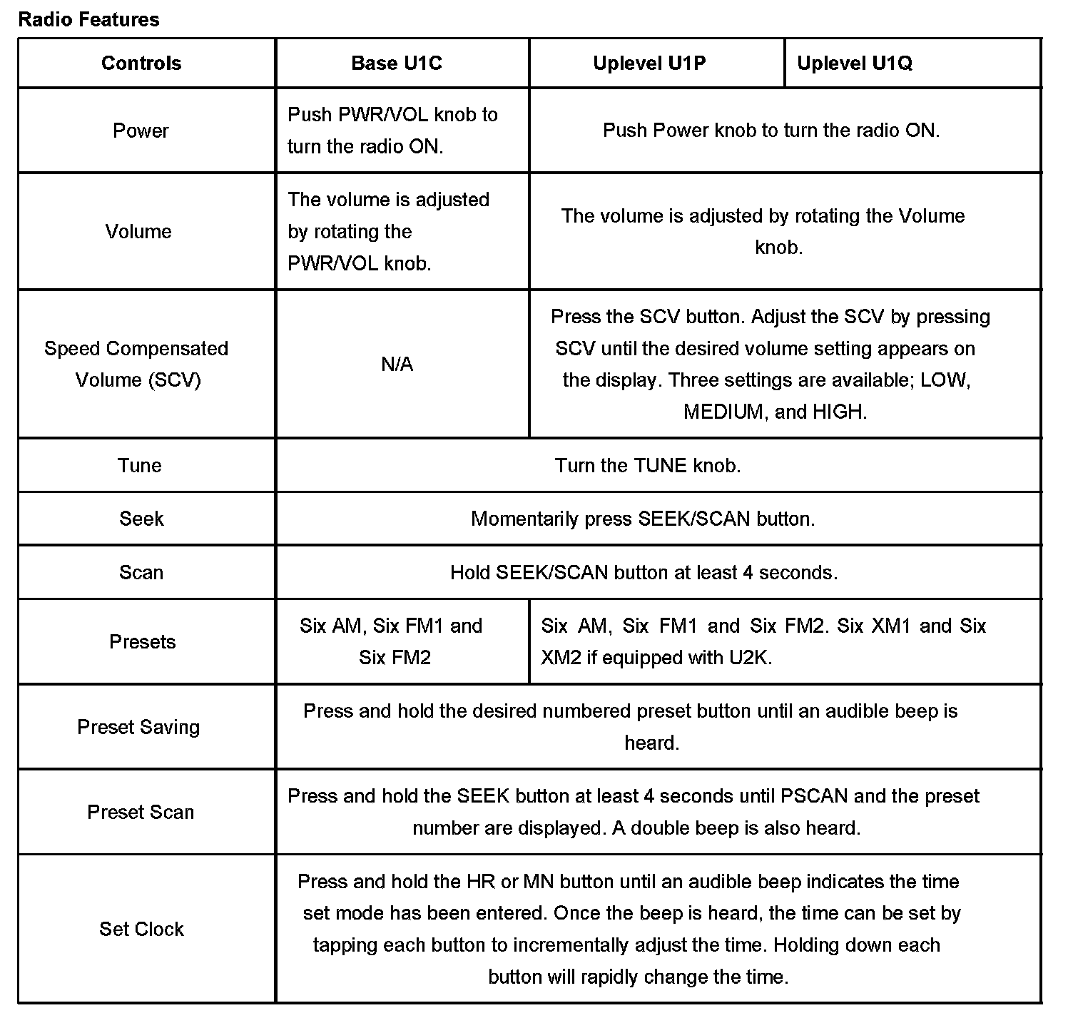 - Base Radio (U1C) - AM/FM Stereo and CD