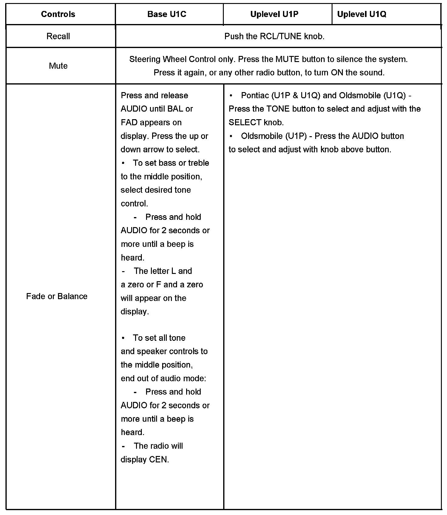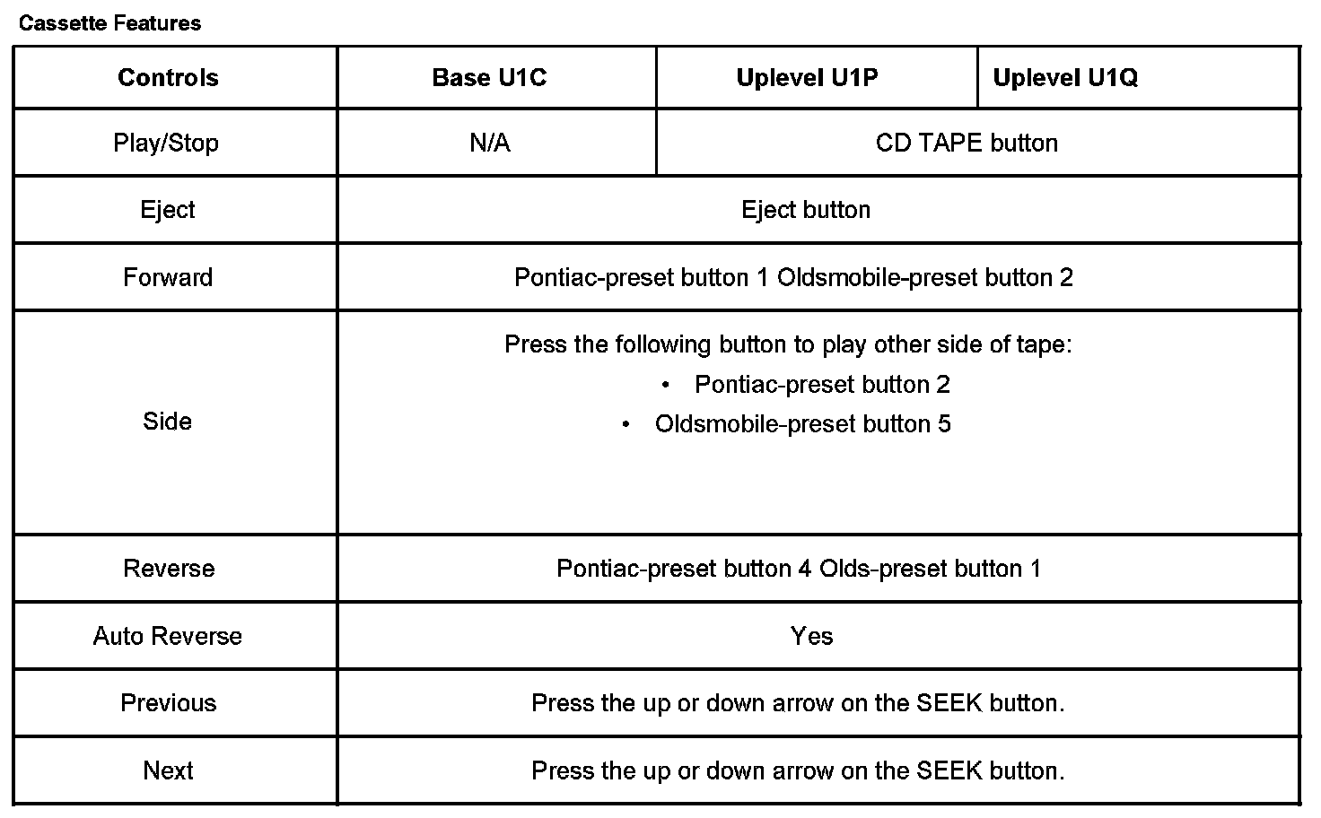 - Uplevel Radio (U1Q) - AM/FM Stereo, Cassette, CD, EQ and RDS
