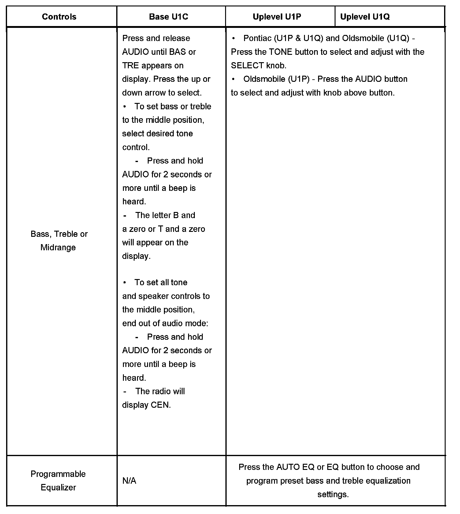 - Uplevel Radio (U1P) - AM/FM Stereo, CD, EQ and RDS