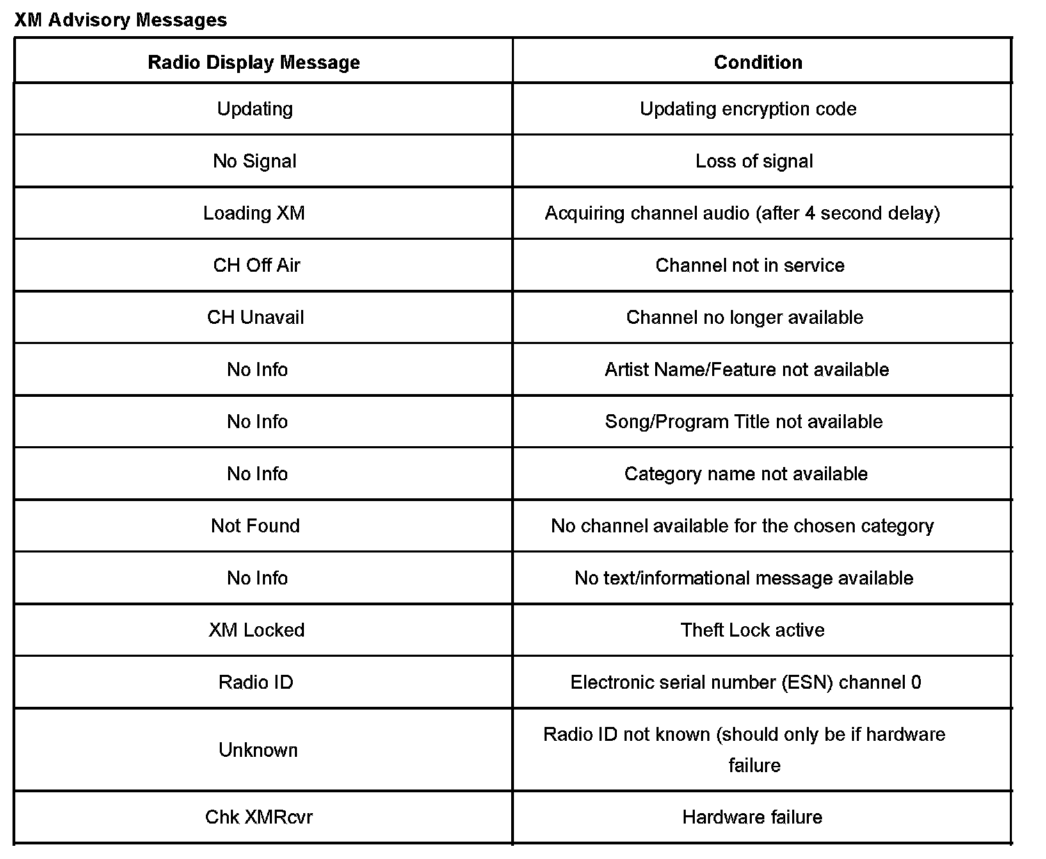 XM Advisory Messages: