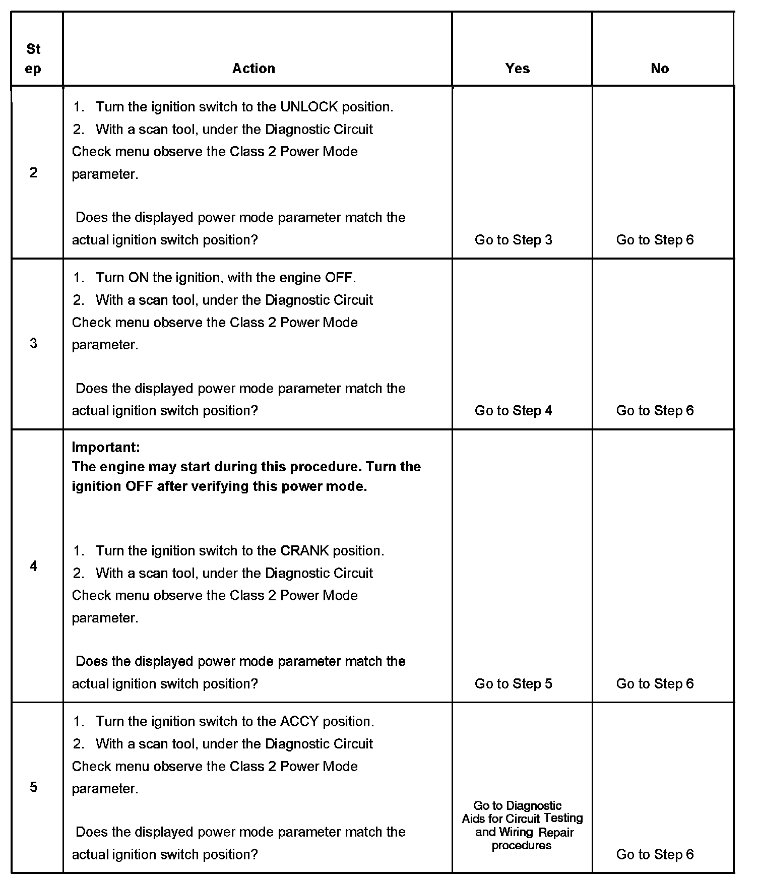 Normal vehicle class 2 communications and module operations will not begin until the system power mode has been identified. Discrete wires from the ignition switch contacts are monitored by the power mode master, PMM module in order to determine the correct power mode. The PMM communicates the system power mode to all class 2 modules on the class 2 serial data line.