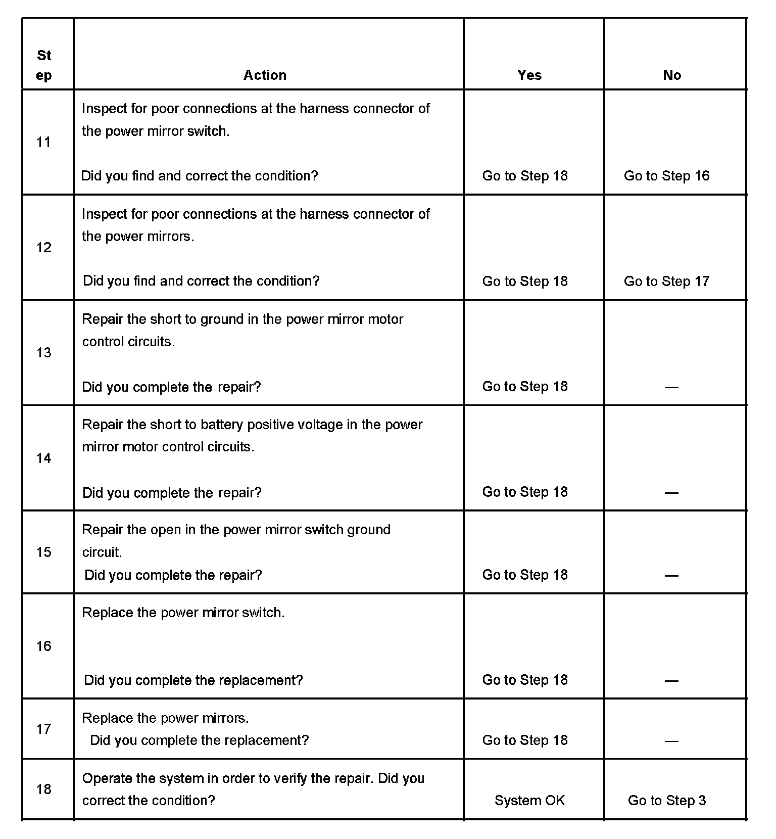 - If the power mirror system fuse is open and a short to ground in the battery positive voltage circuit is not detected, the fault could be a short to ground in one of the power mirror control circuits. This would open the power mirror system fuse when the mirror switch is pressed.