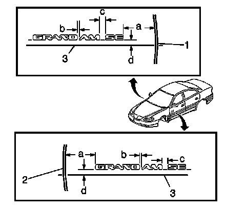 4. For the GRAND AM SE emblem/nameplate install to the following dimensions.