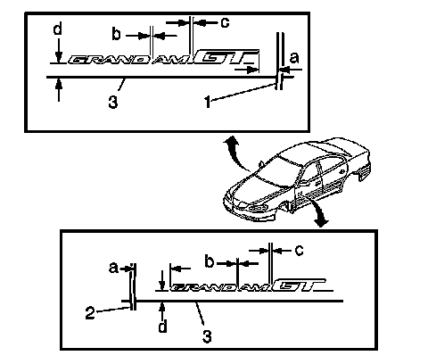 5. For the GRAND AM GT emblem/nameplate install to the following dimensions: