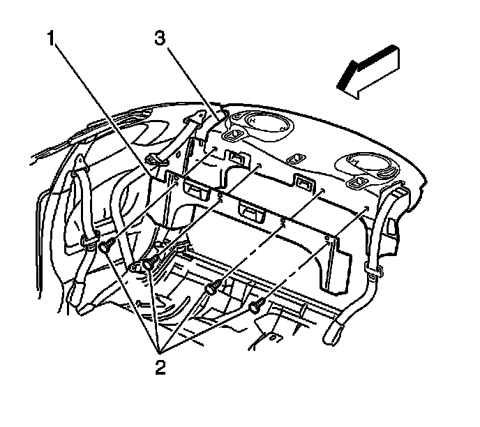 1. Position the shelf trim panel (1) over the rear shelf.