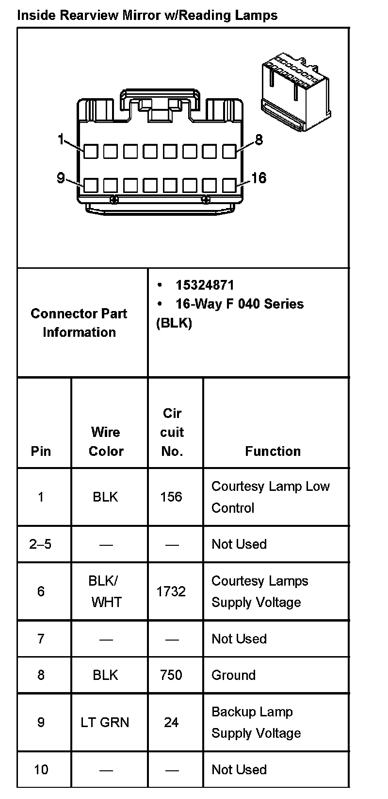 Inside Rearview Mirror W/Reading Lamps Part 2: