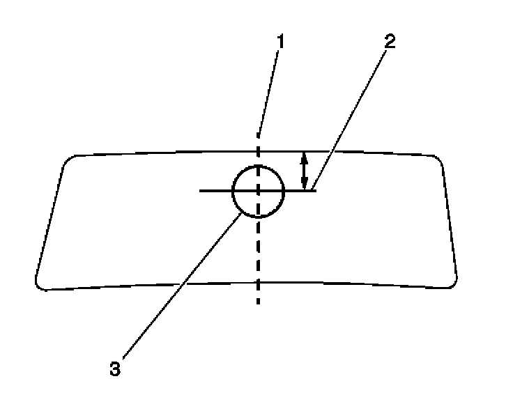 1.2. Using a marking pencil, halfway between the windshield pillars, draw a centerline (1) on the windshield from the roof panel to the windshield base.