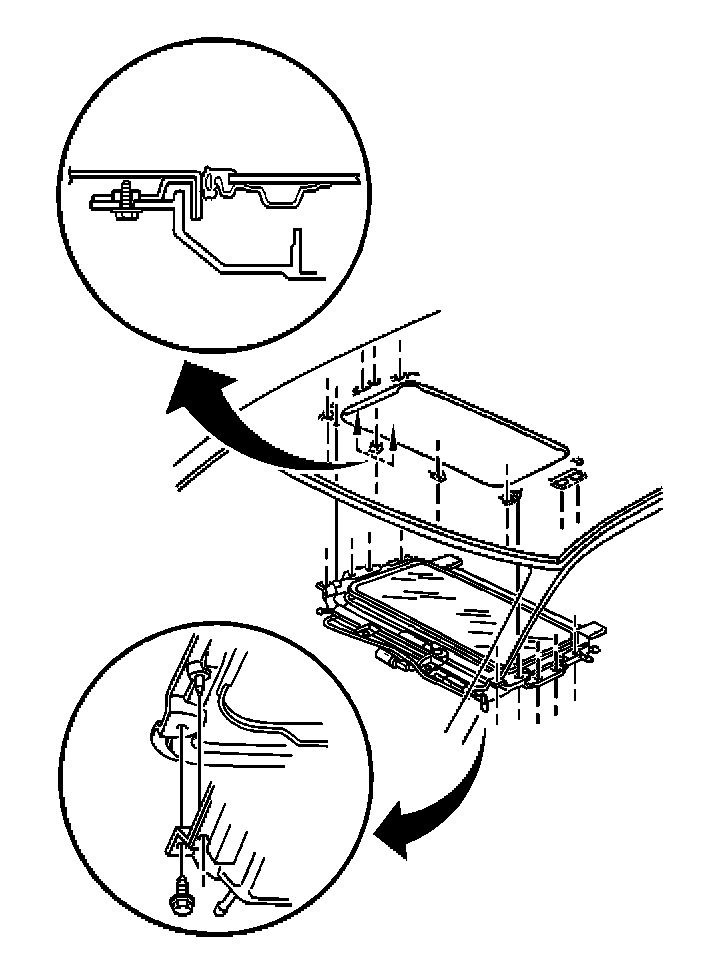 1. Position the sunroof module to the vehicle roof with an assistant.
