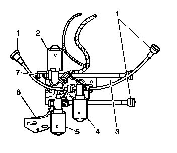 2. Disconnect both vertical drive cables (1) from the adjuster that has reached the fully raised position.