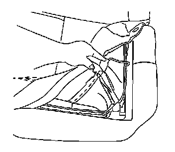 6. Reach inside of the seat cover and unfasten the hook and the loop retainers.