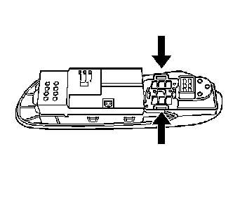 5. Press the accessory switch plate (1) into the door trim panel until the retaining clips (2) are fully engaged.