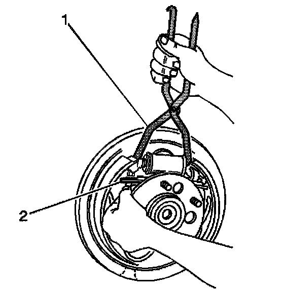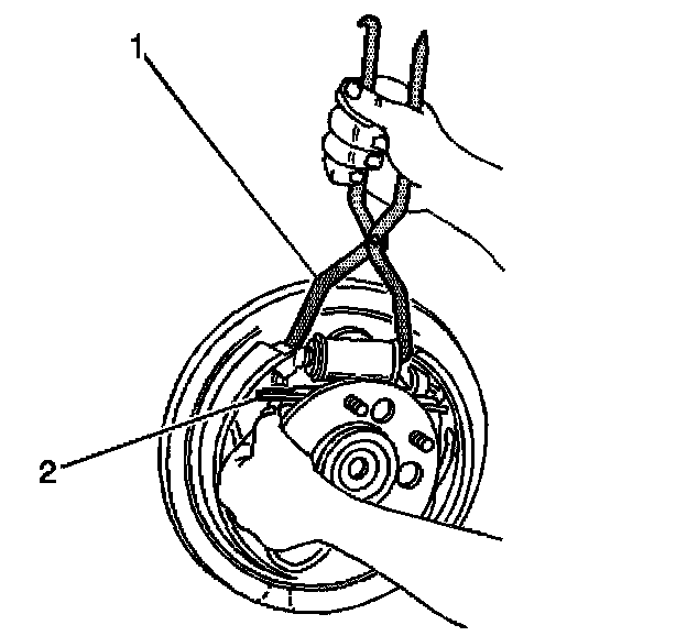 1. Use the J 38400 (1) in order to spread the brake shoes apart.