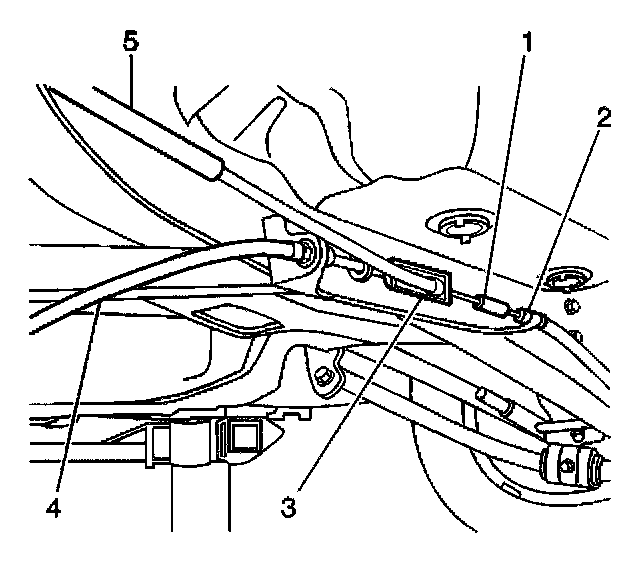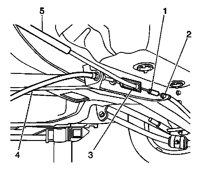 3. Using the J 37043 remove the cable from the mounting bracket (2).