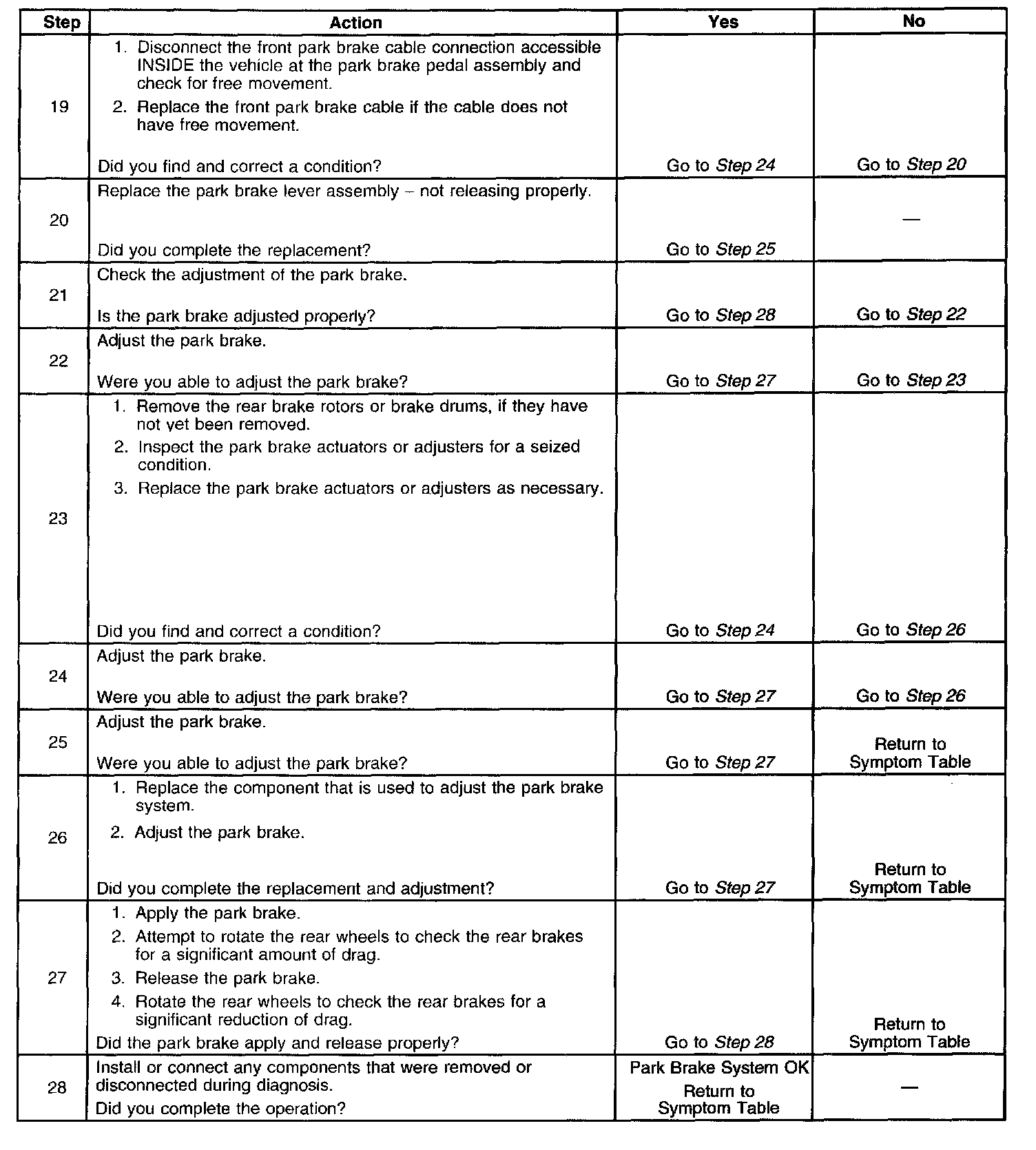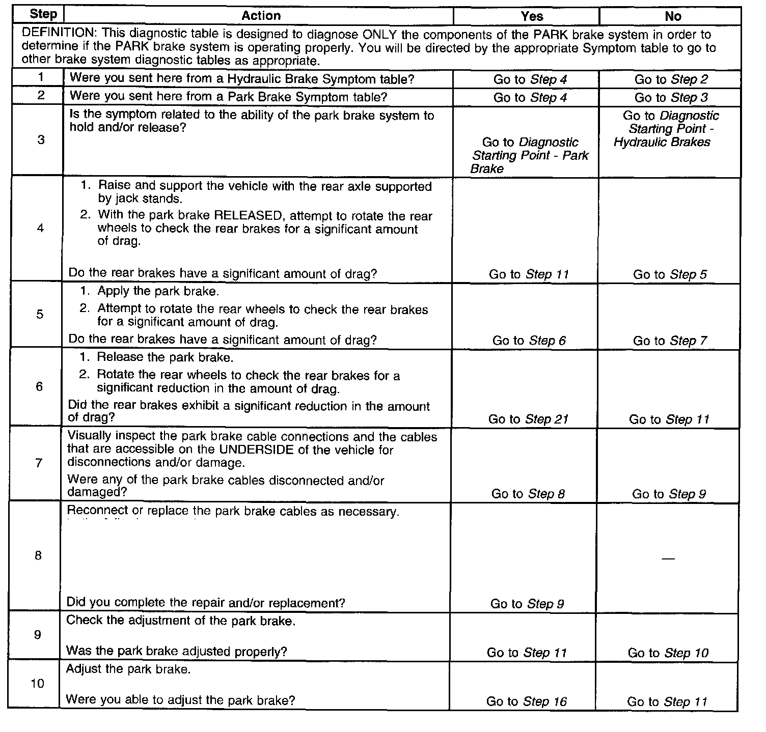 Park Brake System Diagnosis