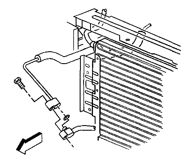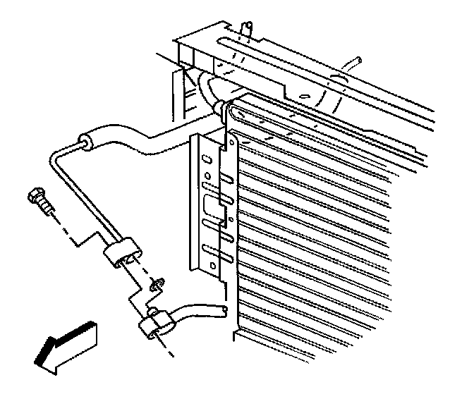 21. Remove the bolt from the evaporator hose to the condenser.