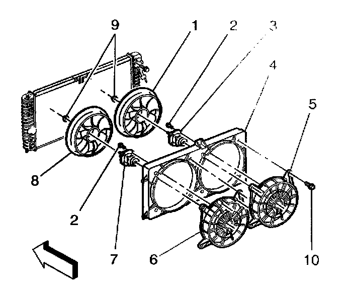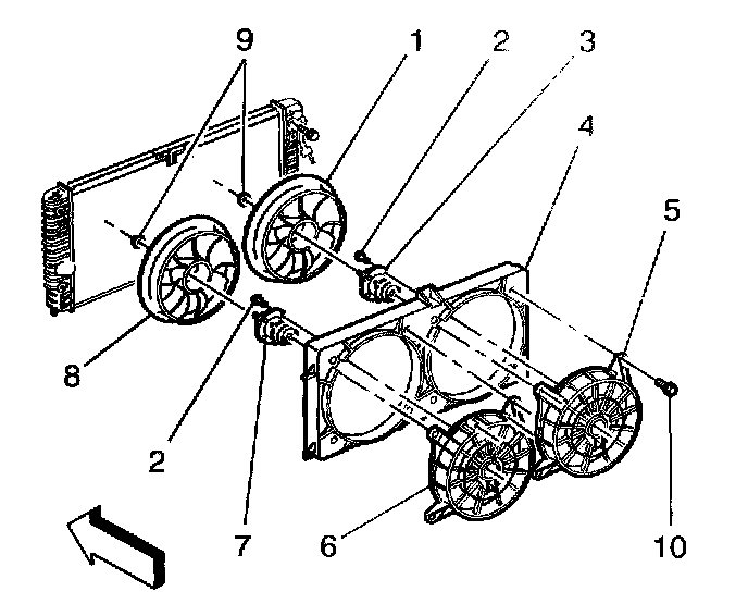 Caution: To help avoid personal injury or damage to the vehicle, a bent, cracked, or damaged fan blade or housing should always be replaced.