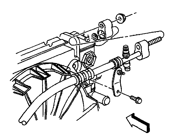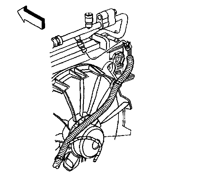 19. Use the J 38185 in order to reposition the radiator inlet hose clamp (1) to the radiator.
