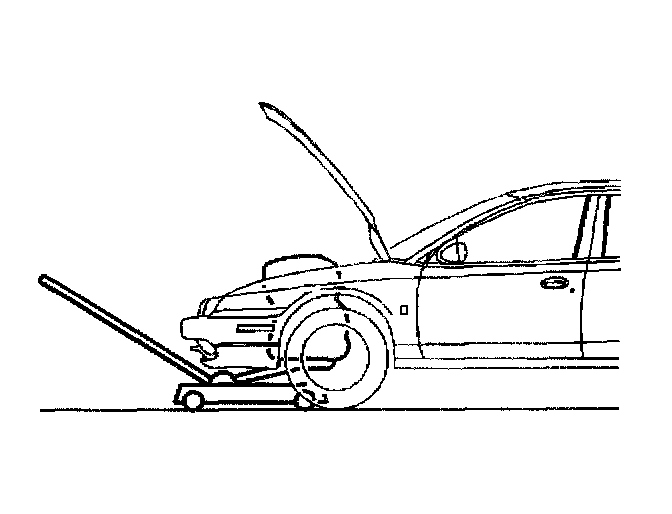 2. Support the engine at the oil pan with a floor jack and a block of wood.