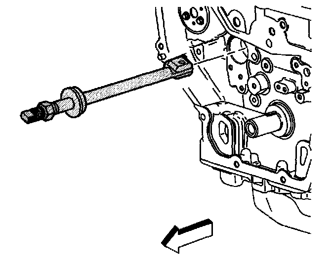 3. Install the J 43650 into the balance shaft hole. Insert the tool with the foot parallel to the shaft.