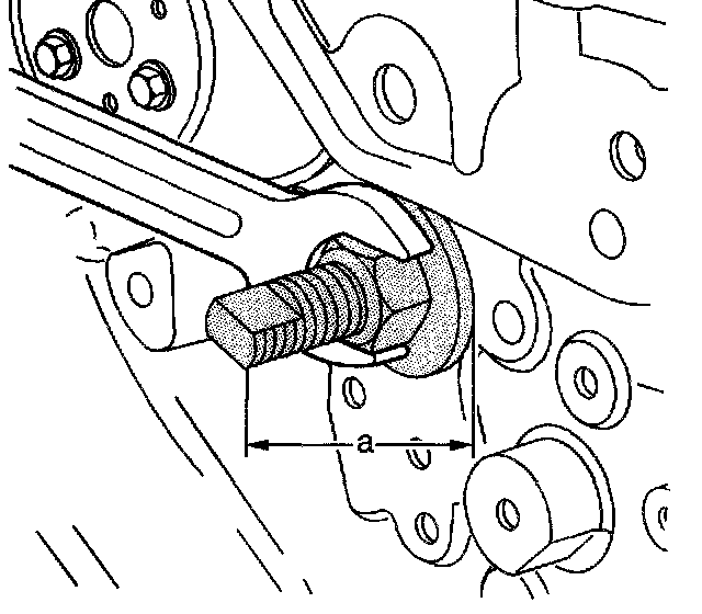 When the J 43650 is properly installed, before removing the bushing, the end of the tool should be 116 mm (4.6 inch) (a) from the block face.
