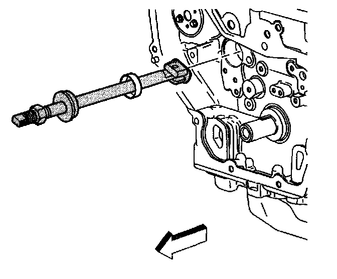 7. Tighten the nut on the J 43650 until the tension releases. When the tension releases, remove the J 43650 and the balance shaft bushing.
