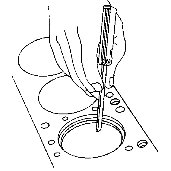 6.1. Place the piston ring in the area of the bore where the piston ring will travel (approximately 25 mm or 1 inch down from the deck surface). Be sure the ring is square with the cylinder bore by positioning the ring with the piston head.