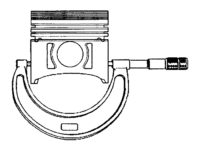 5. With a micrometer or caliper at a right angle to the piston, measure the piston 14 mm (0.570 inch) from the bottom of the skirt.