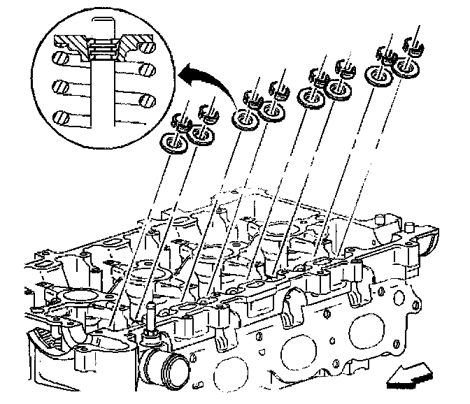 Notice: Do not damage the valve guide. Remove any burrs that have formed at the key groove by chamfering the valve stem with an oil stone or a file.